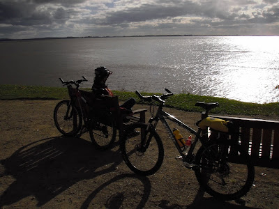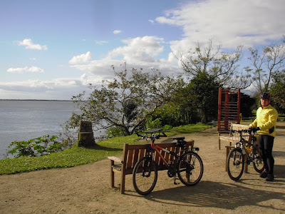 Outro ponto negativo da pedalada é o trânsito na avenida Beira Rio. Não tem como atravessar a rua num horário de pique, ficamos uns bons minutos tentando essa façanha na sinaleira, logo depois da ponte do Dilúvio. Essa sinaleira é apenas para conversão à esquerda. Quem segue reto tem trânsito livre, por isso pedestres e ciclistas não conseguem atravessar ali. Tem uma faixa de segurança logo depois da rótula das "cuias", na direção Gasômetro-Ipanema, mas nenhum carro pára, o que também não condeno porque se uma carro parar ali, com aquele fluxo todo, naquela velocidade toda, o resultado será uma carambola de carros e, provavelmente um ciclista atropelado. Já que educação no trânsito não funciona, acho que teria que ter uma sinaleira ali.