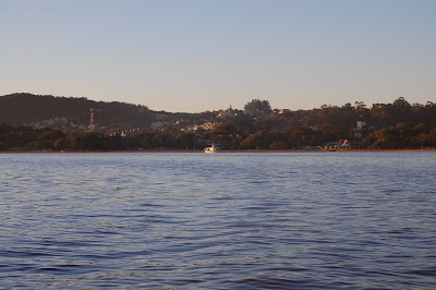 Depois de dias de chuva e frio, aquele final de tarde estava uma maravilha! Tentei fotografar o Leonardo mas ele fugiu da foto, só peguei o braço dele e um barco de turismo partindo do Gasômetro.