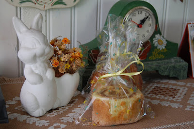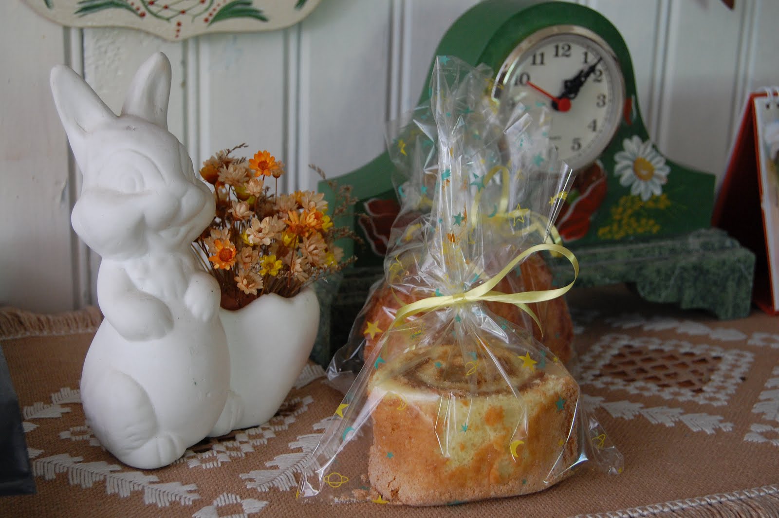 Mais um enfeite na sala de jantar, com um mimo que fiz para o sogro, um pedaço de rocambole de doce de leite embrulhado como biscoito.