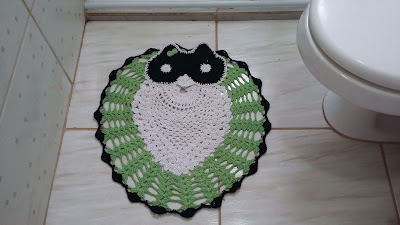 Então, das artes da Néia, como comecei a chamar e brincar com ela, foram os sousplat, dois tapetes de coruja, dois tapeixes e uma outra coisinha que ela fez mas que vou mostrar em outra postagem.