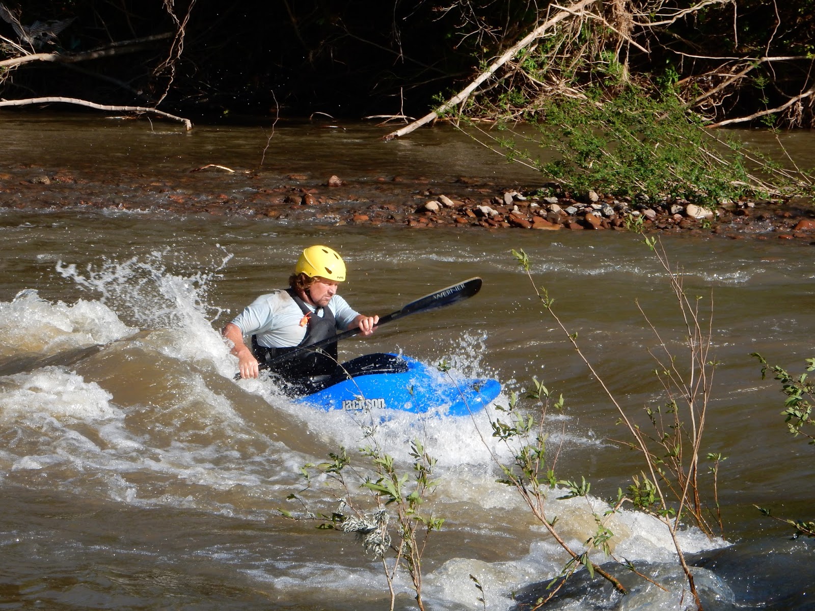 Leonardo encontrou, além do Tiago da ANAMA, que também rema, um outro amigo remador que estava fazendo o curso, e ficaram analisando a cascata para ver se daria para descer de caiaque. Tudo maluco!