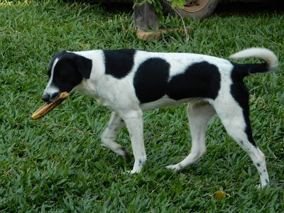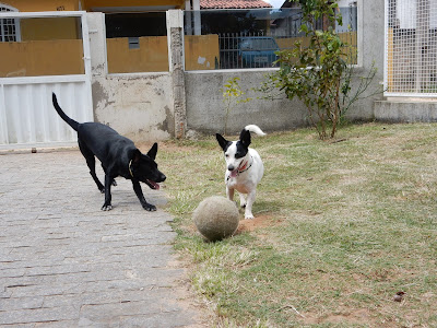 A Niméria é uma filhotona, não tem um ano ainda, acho que tem uns 7-8 meses, foi bem divertido brincar com ela, pois ela é muito bobinha. Cansou rapidinho! Já o Apolo, é um senhor de nove anos e muito peludo, como estava muito quente, logo, logo se recolheu para o fresquinho da garagem.